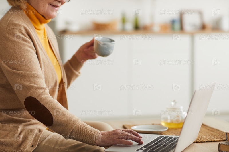 Зрелая женщина, использующая ноутбук