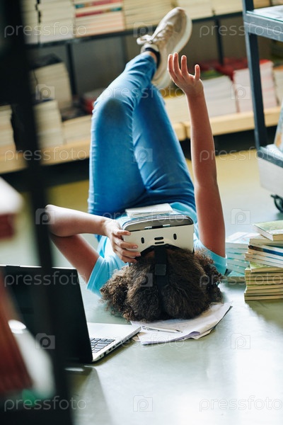 Девушка-подросток, использующая гарнитуру VR