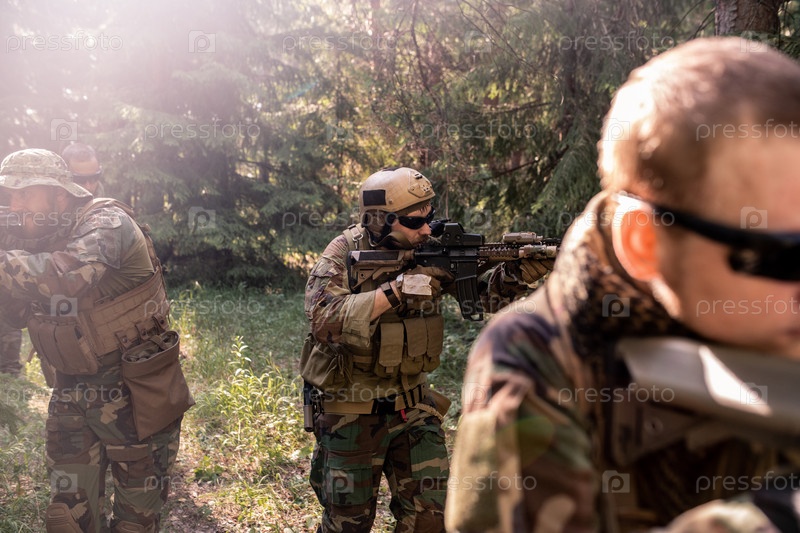 Вооруженные солдаты осматривают местность