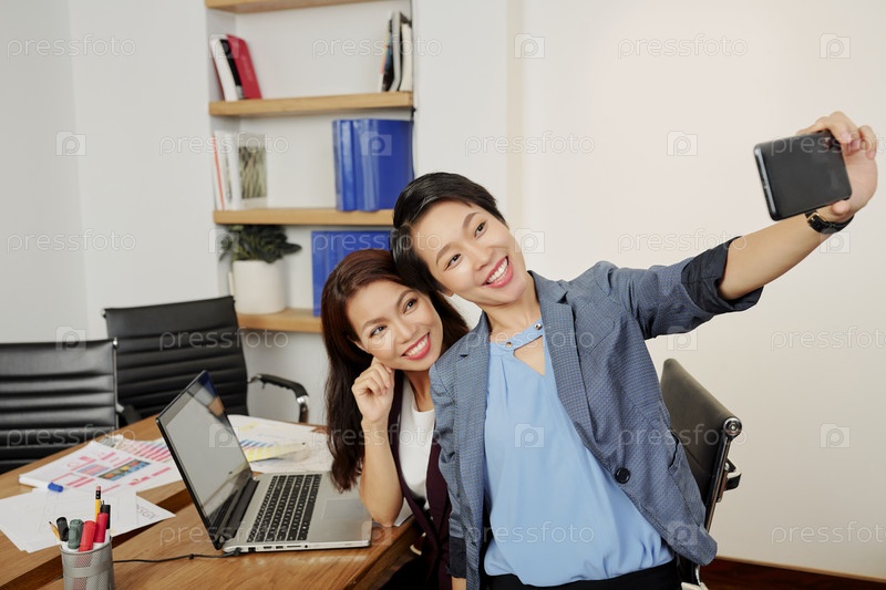 Деловая женщина фотографирует с другом