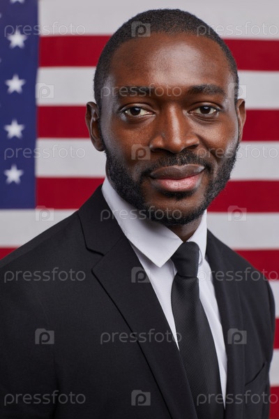 Успешный афроамериканец против американского флага