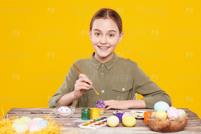 Счастливая девочка готовится к Пасхе