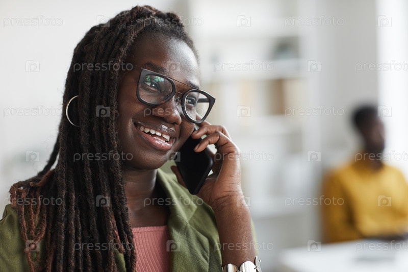 Афроамериканская бизнесвумен, говорящая по смартфону