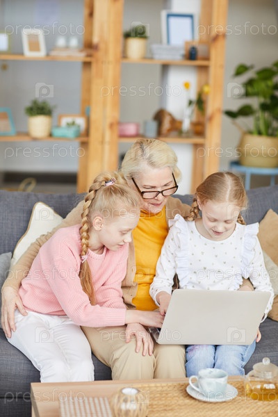 Семья, использующая ноутбук
