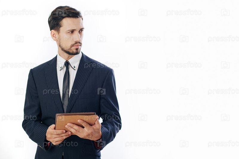 Серьезный предприниматель с планшетным компьютером