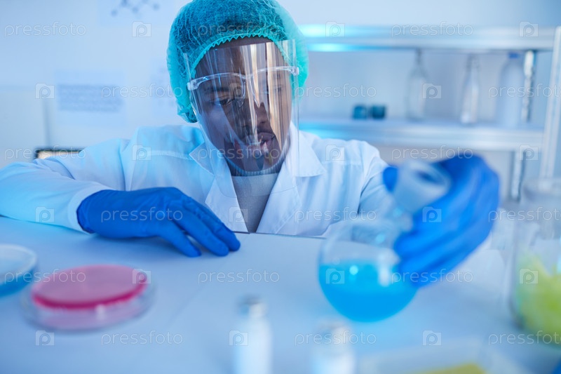 Человек, работающий с химикатами в лаборатории