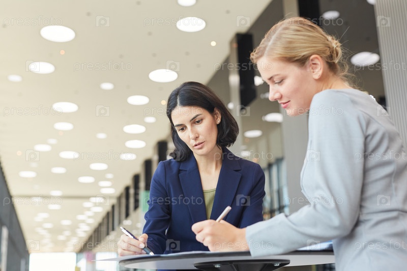 Низкий угол обзора на деловых женщин, встречающихся за столом