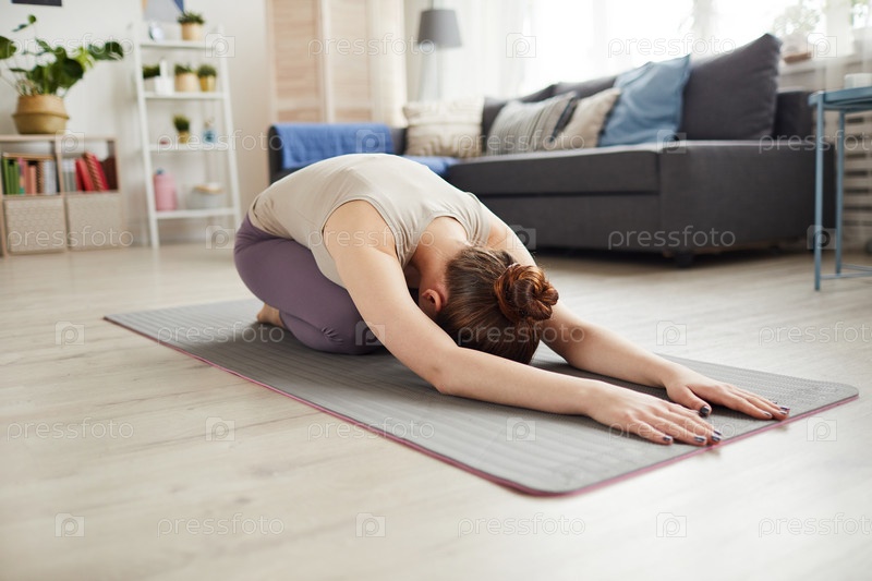 Женщина делает упражнения по расслаблению дома