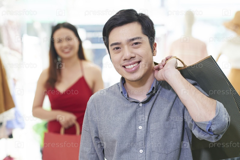 Позитивный мужчина с сумками для покупок