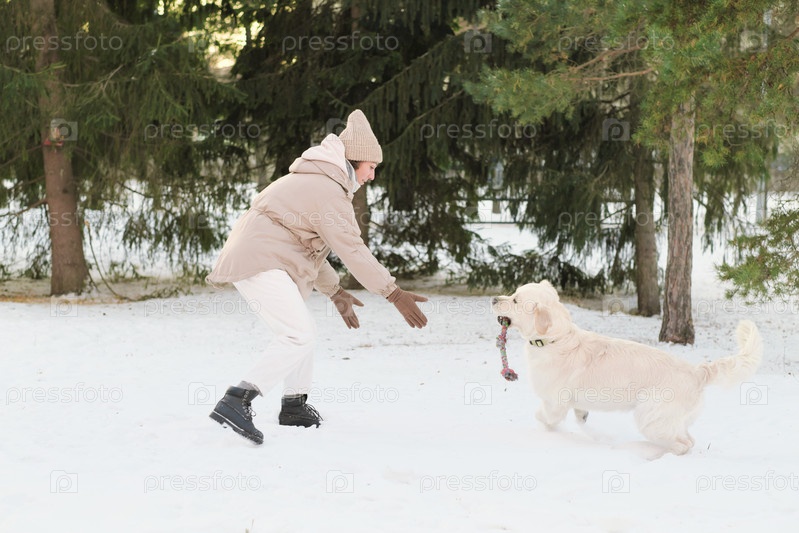 Женщина с собакой снаружи