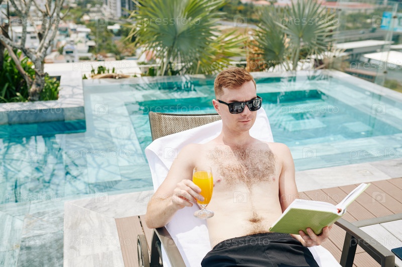 Человек, читающий у бассейна