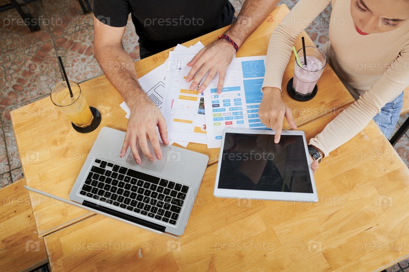 Бизнес-партнеры обсуждают отчеты