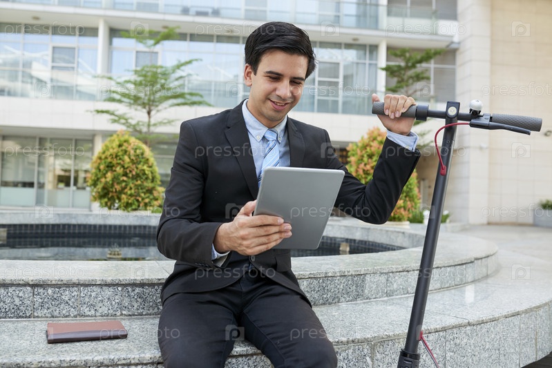Бизнесмен читает статью онлайн
