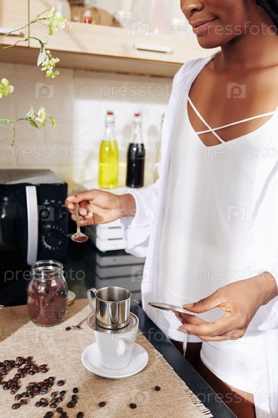 Женщина готовит утренний кофе