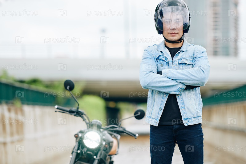 Уверенный серьезный мотоциклист
