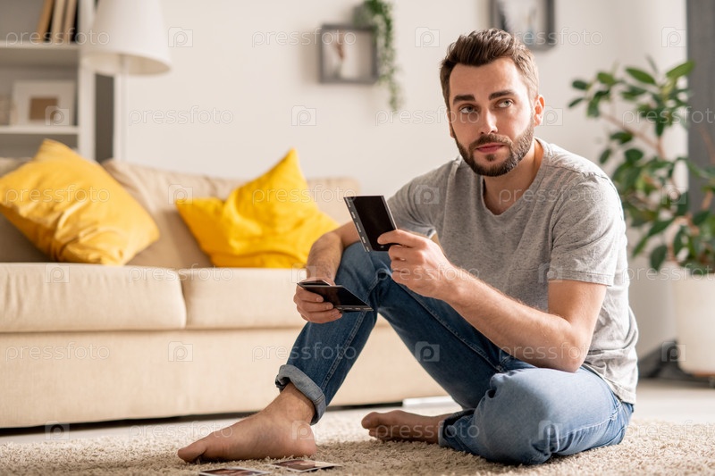 Молодой человек с фотографиями дома