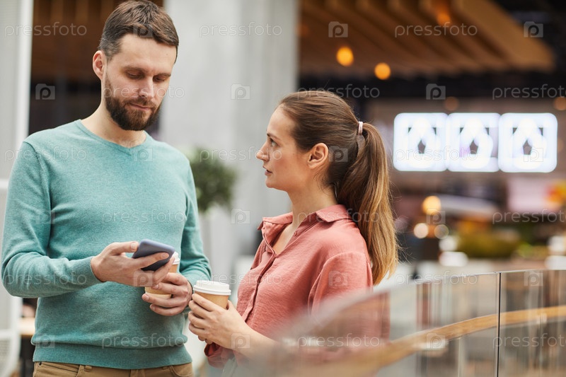 Молодая пара стоит в торговом центре