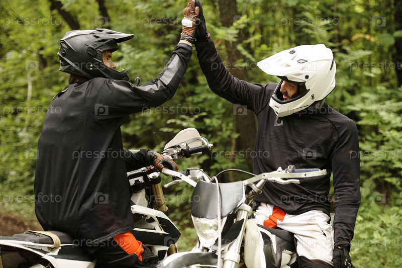 Мотоциклисты, поддерживающие друг друга