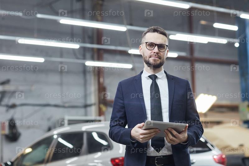Бизнесмен в автосервисном центре Современный