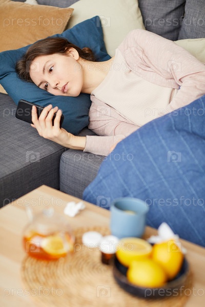 Женщина, использующая телефон дома