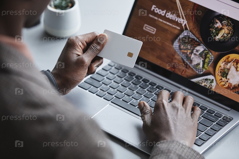 Мужчина заказывает еду онлайн