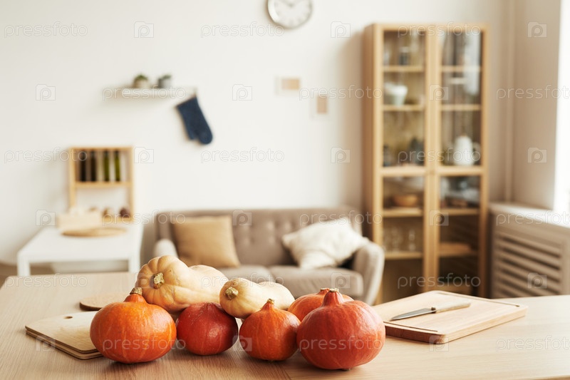 Свежие тыквы на столе дома