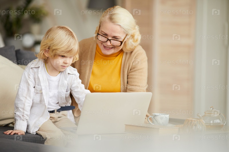 Бабушка учит своего внука