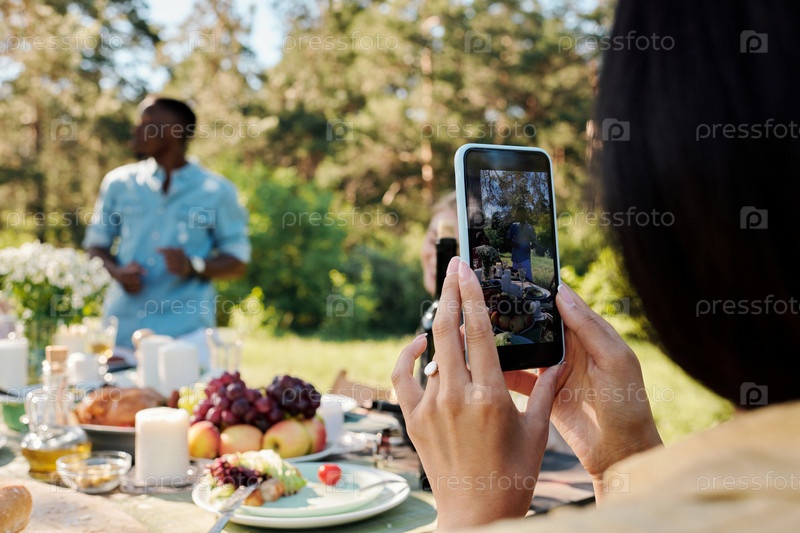 Руки молодой современной женщины-милениала со смартфоном, записывающей видео