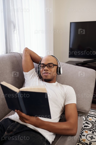Улыбающийся человек в чтении романа