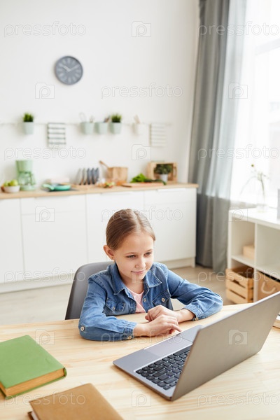 Милая девушка использует ноутбук в онлайн-уроке