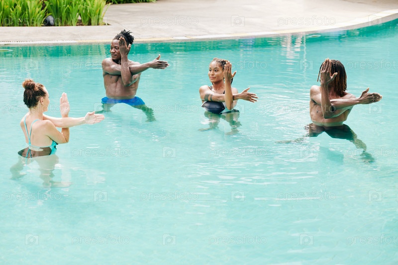 Активные люди тренируются в бассейне