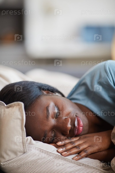 Афроамериканская женщина спит вблизи друг от друга
