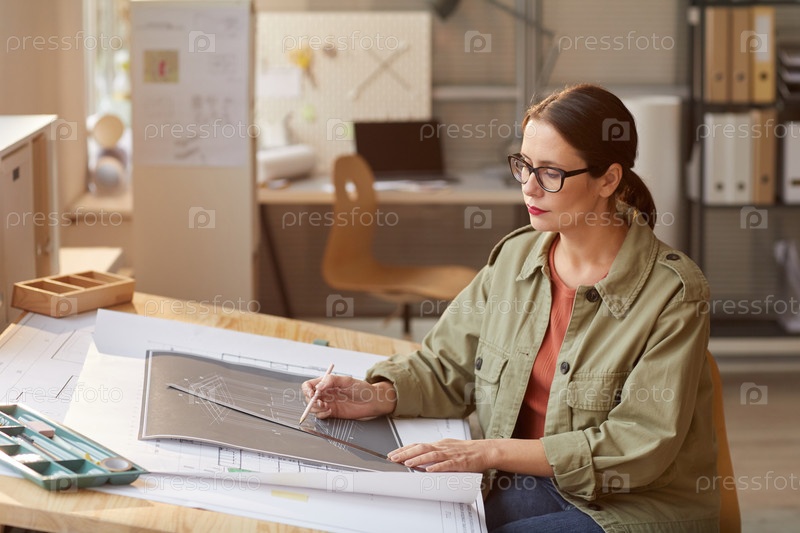 Рисование планов в офисе Женщина