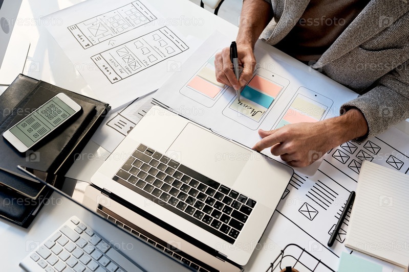 Unrecognizable Applecation Designer Drawing Sketch Непризнанный дизайнер аппликации рисует эскиз
