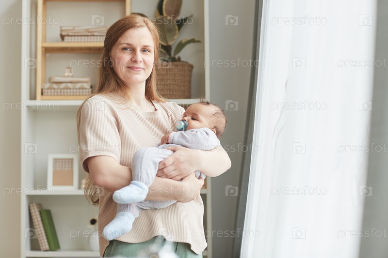 Счастливая взрослая мать, держащая ребенка