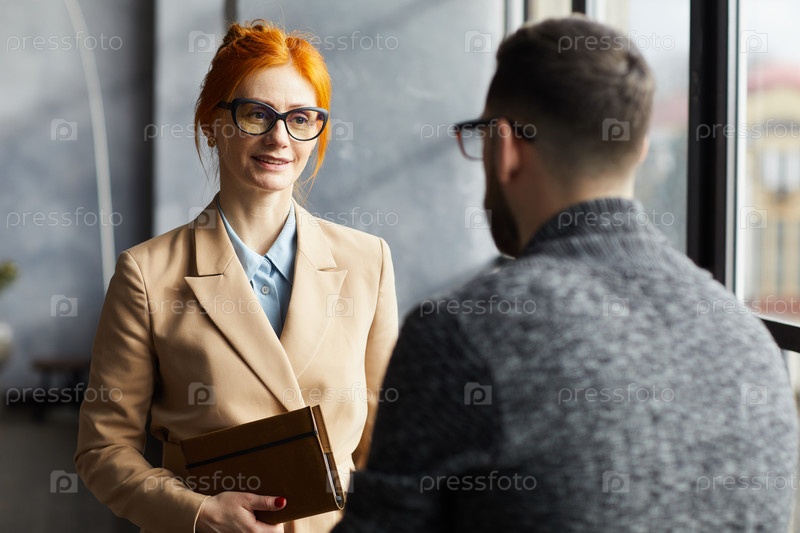 Деловая женщина разговаривает с бизнесменом
