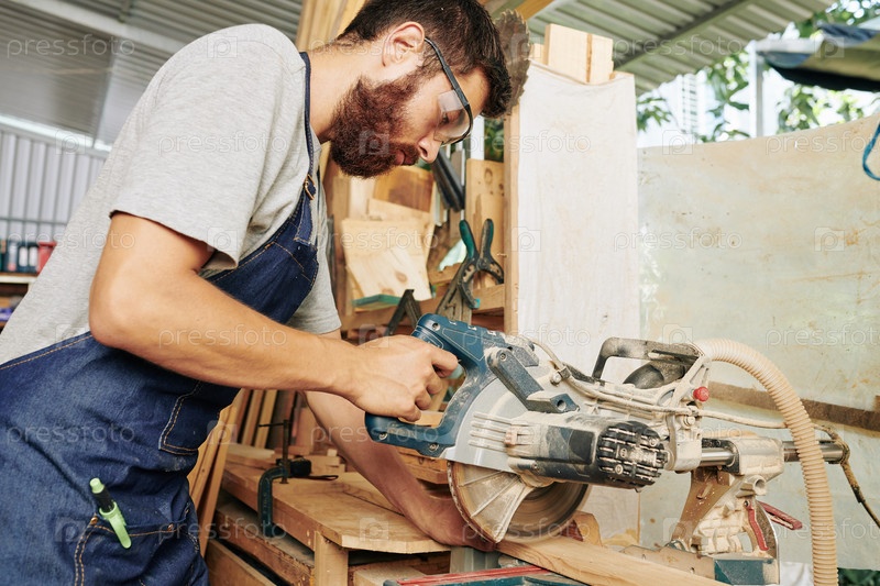 Плотник, режущий древесину