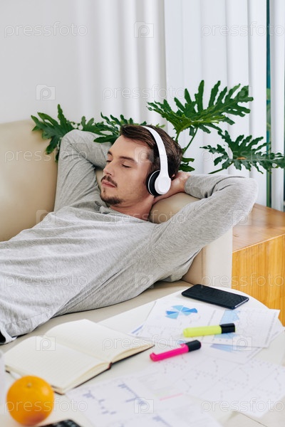 Бизнесмен спит на диване