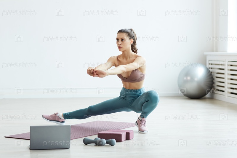 Спортивная молодая женщина растягивается