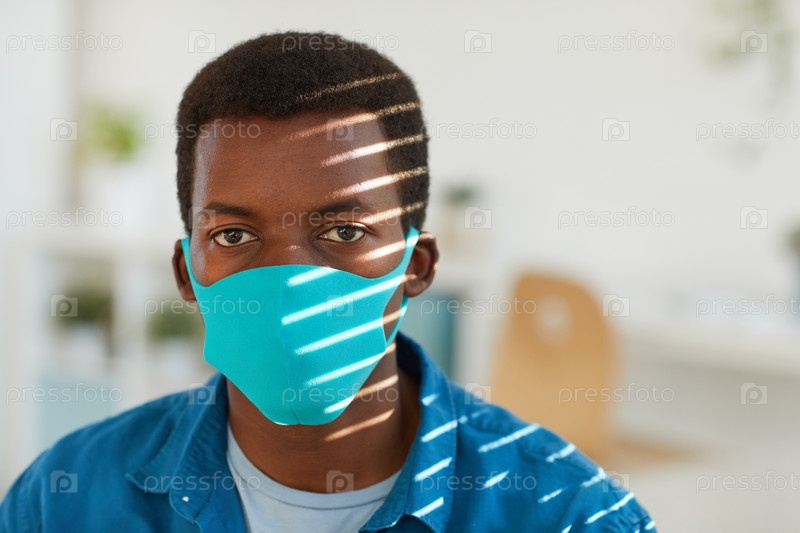Африканский мужчина, носящий маску в офисе после пандемии