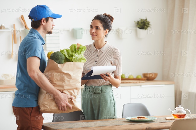 Женщина подписывается за доставку еды