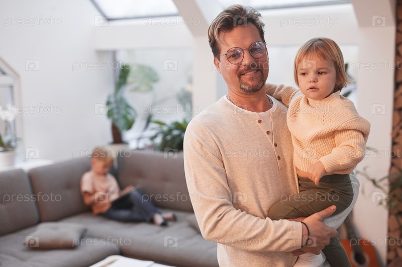 Счастливый отец, держащий маленькую девочку