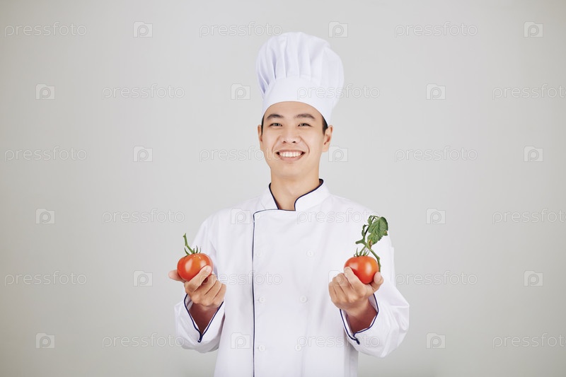 Шеф держит свежие помидоры