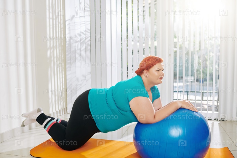 Женщина с избыточным весом, занимающаяся фитнес-боллой