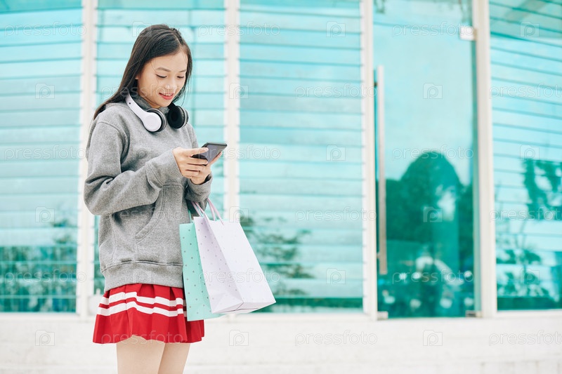 Молодая азиатская женщина с сумками для покупок