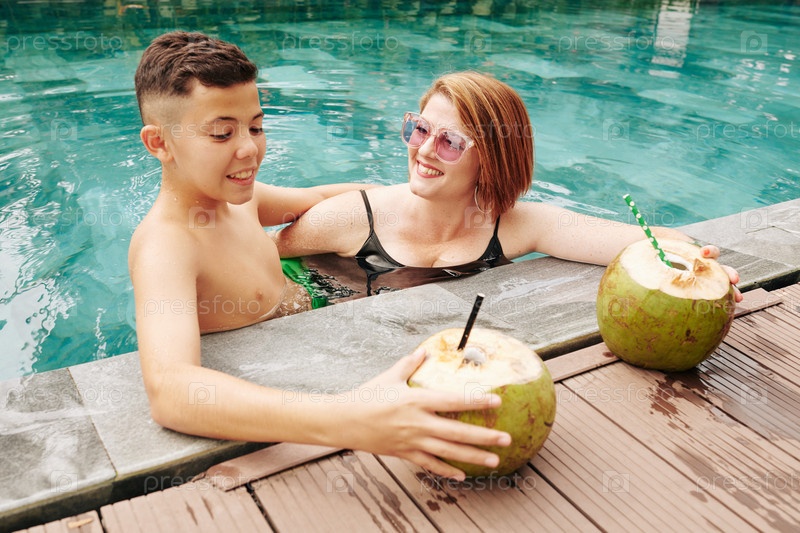 Мать и сын в бассейне