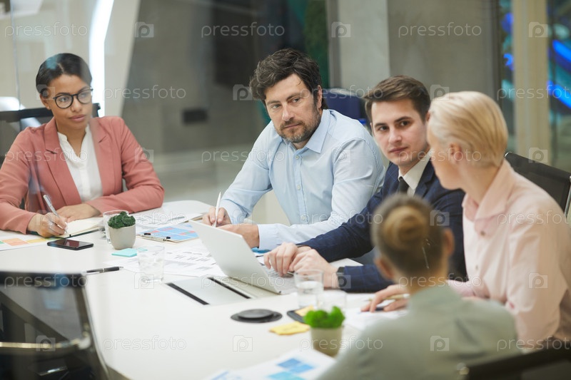 Люди, сидящие на совещании в офисе