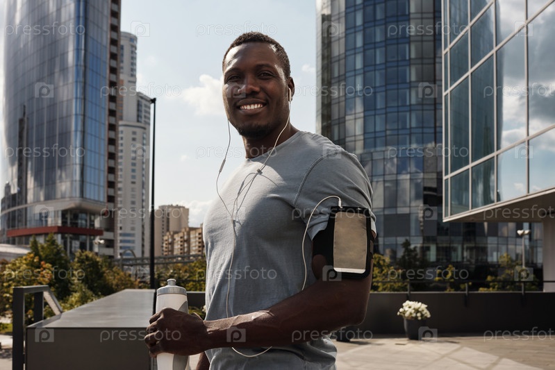 Улыбающийся чернокожий молодой человек в городе