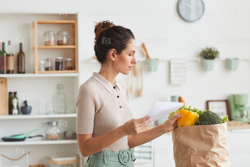 Женщина проверяет список после покупок