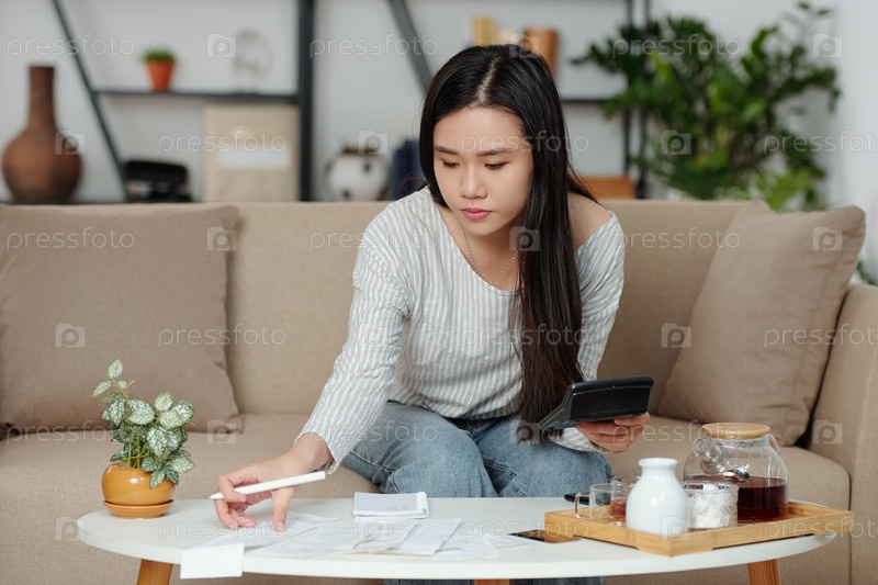 Домашняя хозяйка анализирует домашние расходы